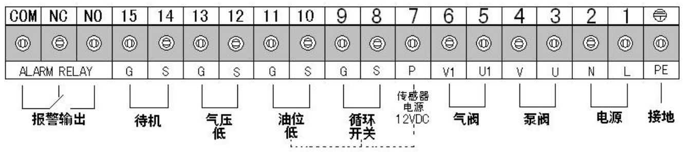 端子 10、11 接低油位信號檢測開關(此開關閉合控制器報警)。