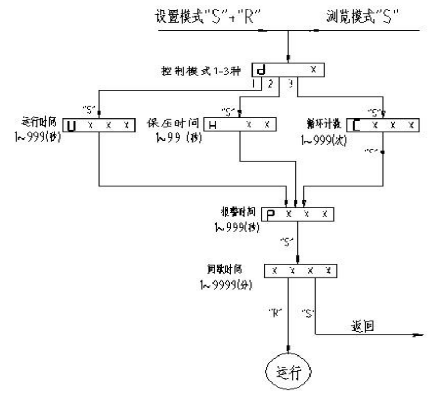 1.當全部數據設置完成后按下“R”鍵即可存貯已設置的參數并起動運行。
