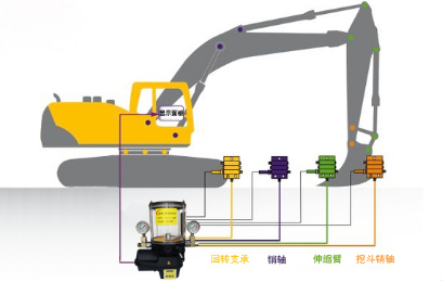 成獨立的潤滑系統,在程控器的驅動下可以定時定量的將潤滑脂分配到各個潤滑