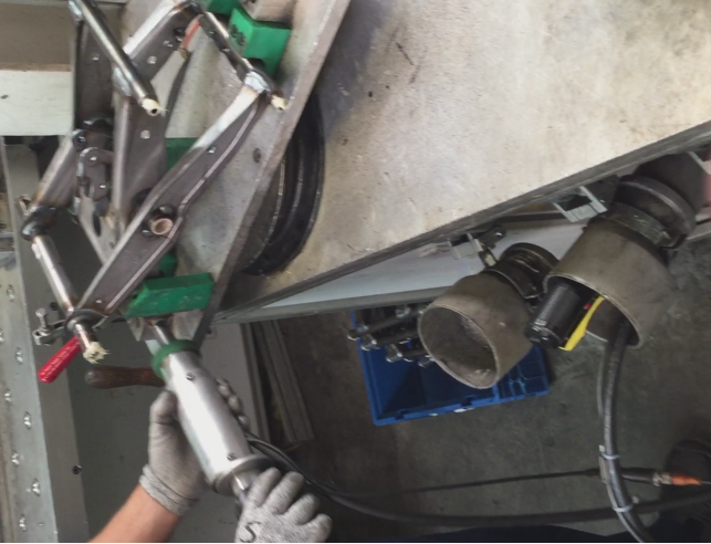 有進(jìn)氣口,可以邊充氣邊提升,順利換桶。打高粘度油脂時,可 以使升降裝置給壓油盤向下的作