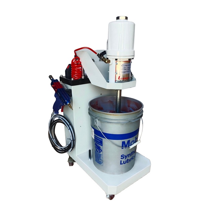 上配有壓油盤,可以刮掉桶壁上的油脂。氣動柱塞泵為雙作用氣缸,往復吸油,提高了注油效率。