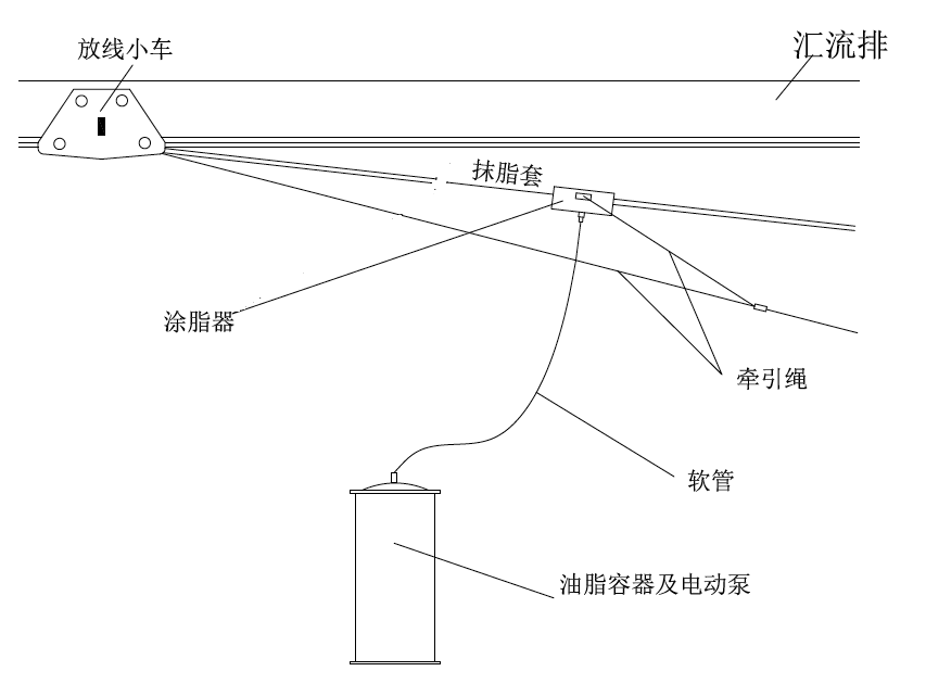 TYX-120型機(jī)車(chē)高空接觸線(xiàn)自動(dòng)涂油裝置由高壓電動(dòng)供脂泵,油脂儲(chǔ)存桶,壓油盤(pán),