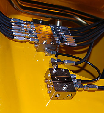片式遞進柱塞分配器是由不同排油量和出口數的單元組合而成,通過液壓順